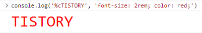console.log('%cTISTORY', 'font-size: 2rem; color: red;');