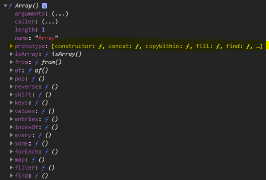 Array 생성자 함수에서 prototype 밖에 선언된 isArray, from, of 등의 메서드를 arr에서 볼 수 없습니다.